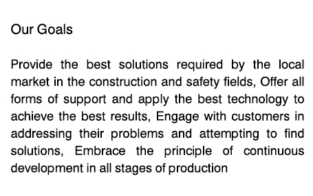 Providing the best solutions required by the local market in the field of construction and safety requirements